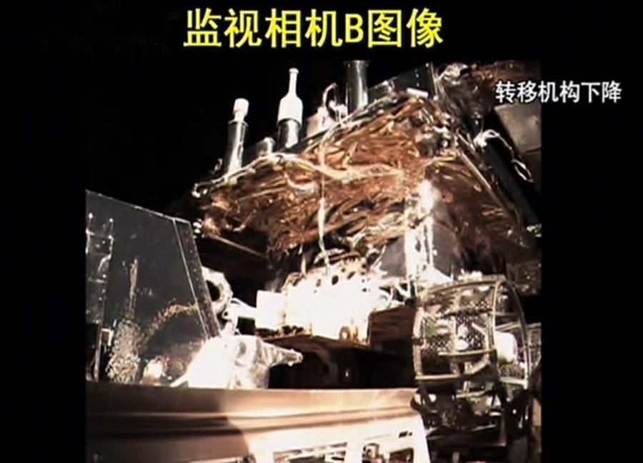 這是“嫦娥三號”著陸器巡視器正在進行分離的畫面。 12月15日4時35分,“嫦娥三號”著陸器巡視器成功分離。 新華社發(視頻截圖)