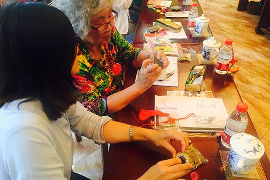 人民網北京5月23日電 5月23日下午,在端午節來臨之際,女性家庭社會大講堂特在西城區西華書房舉行了一場題為“書香端午‘粽’情詩詞”的《端午詩詞》讀書活動。通過賞析歷代吟詠端午風俗的優秀詩詞和親手制作端午香囊,從各個不同的角度和側面,了解端午時節的社會生活,從而對端午節這一傳統節日所蘊含著的深層含義在物質和精神上產生有效的共鳴。