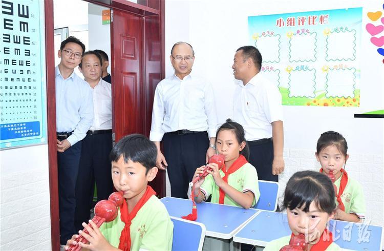 6月27日,省長許勤到張家口市進行“不忘初心、牢記使命”主題教育調研。這是許勤實地考察樣田鄉中心小學。河北日報客戶端記者 孟宇光 攝