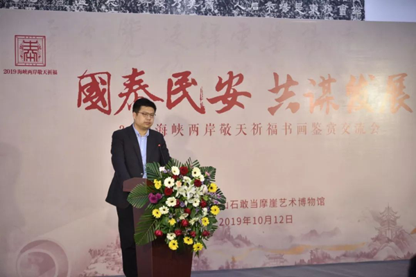 “國泰民安 共謀發展”2019海峽兩岸敬天祈福書畫鑒賞交流會在中國·泰山石敢當摩崖藝術博物館拉開帷幕。(中國臺灣網 發)