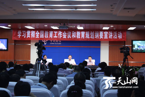 宣講會由新疆維吾爾自治區(qū)黨委常委爾肯江?吐拉洪主持,新疆生產(chǎn)建設(shè)兵團副司令員宋建業(yè)出席。本次宣講活動以視頻會形式進行,自治區(qū)黨委統(tǒng)戰(zhàn)部、教育廳、編辦、發(fā)改委、民(宗)委、財政廳、人力資源和社會保障廳、新聞出版局以及兵團相關(guān)部門負責人,部分地州、兵團分管教育負責人,自治區(qū)教育廳、兵團教育局有關(guān)部門負責人,部分高校、中職和中小學校長在主會場參會。自治區(qū)各地州、縣(市),兵團各師、團教育行政部門中層以上干部,高校、中職和部分中小學校長在分會場參會,總計近萬人直接聽取了宣講報告。 (記者 楊晨光 蔣夫爾)