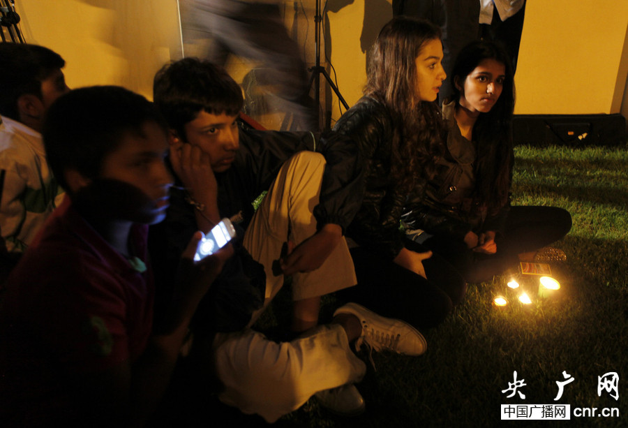 當地時間2013年12月5日,南非約翰內斯堡,民眾聚集在南非前總統曼德拉的住宅外,燭光悼念曼德拉去世。