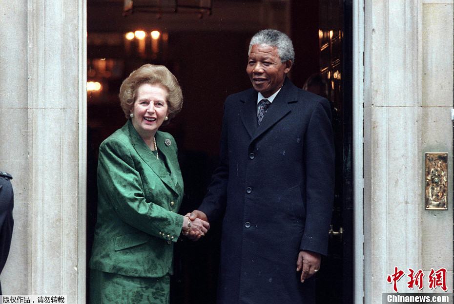 1990年7月,撒切爾夫人在倫敦的唐寧街10號(hào)會(huì)見(jiàn)曼德拉。