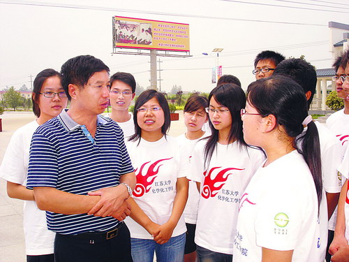 2009年7月3日,江蘇大學(xué)學(xué)生暑期到小崗村進(jìn)行社會實踐,圖為沈浩同志向大學(xué)生介紹小崗村情況。 資料照片