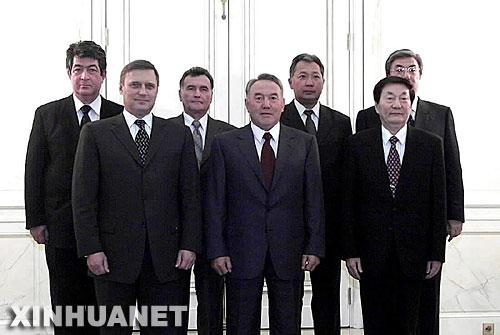 這是2001年9月14日,哈薩克斯坦共和國總統納扎爾巴耶夫在阿拉木圖會見出席上海合作組織成員國總理首次會晤的各國總理。 新華社發