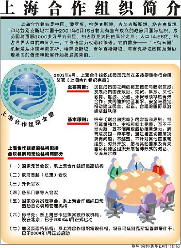 ● 2003年9月23日,在北京舉行了上海合作組織成員國政府首腦會議,簽署了上海合作組織成員國多邊經貿合作綱要,通過了2004年上海合作組織的首個預算。