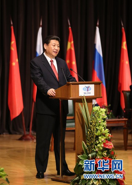 正在俄羅斯進行國事訪問的國家主席習(xí)近平23日在莫斯科國際關(guān)系學(xué)院發(fā)表題為《順應(yīng)時代前進潮流 促進世界和平發(fā)展》的重要演講。習(xí)近平在演講中深入闡述中國對當(dāng)前世界形勢的看法和對國際關(guān)系的立場主張,呼吁各國共同推動建立以合作共贏為核心的新型國際關(guān)系,強調(diào)中國堅定不移走和平發(fā)展道路,堅定不移發(fā)展中俄全面戰(zhàn)略協(xié)作伙伴關(guān)系。