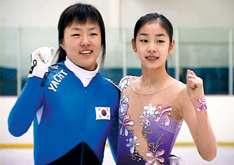 金妍兒與多年的好友、韓國(guó)花滑名將李相花在童年時(shí)的合影