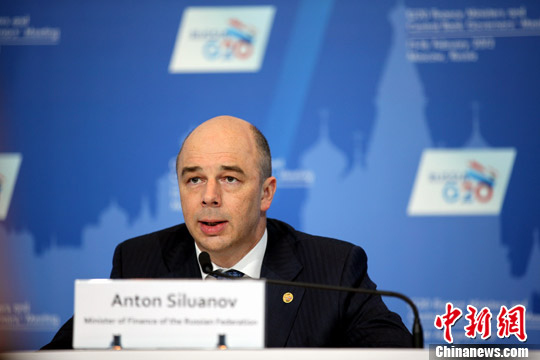 二十國集團(G20)財長和央行行長會議16日在俄羅斯莫斯科閉幕,會議就全球經濟形勢、G20“強勁、可持續、平衡增長框架”、長期投資融資、金融改革等進行了討論。圖為俄羅斯財政部長西盧阿諾夫在本次會議后召開新聞發布會,回答記者提問。中新社發賈靖峰 攝