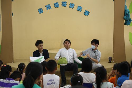 三位“臺灣哥哥”賣力的講故事(左林沿佑,中劉俊凱,右陳穎凡)