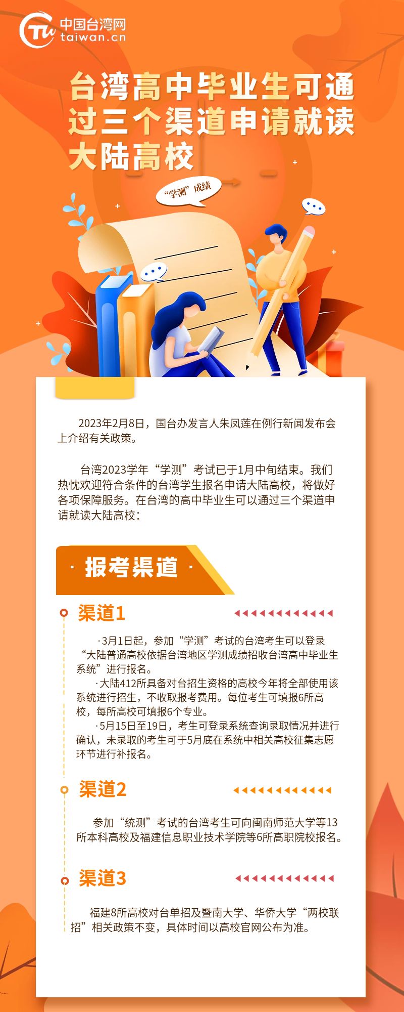 臺灣高中畢業生可通過三個渠道申請就讀大陸高校
