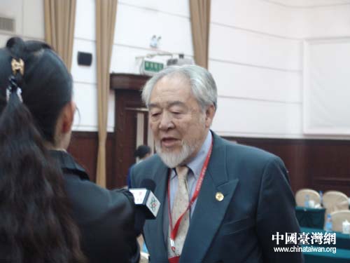 中國臺灣網4月8日鄭州消息 在第七屆中國和平統一促進會海外會長會的會場上,有一位白須冉冉,仙風道骨的老人,他就是中國和平統一促進會理事,全英華人中國統一促進會會長,南京大學名譽校董、客座教授,全國政協海外委員單聲先生。當年,他曾因當面向溫家寶總理提出以法律的手段促進祖國統一的建議(他當時提出的名稱是“統一法”)而聞名一時。記者在與他的交談中,也切實感受到了單聲先生以法理反“臺獨”、促統一的堅定與熱切。