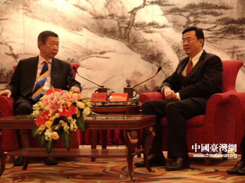 中國統(tǒng)促會執(zhí)行副秘書長李路(右)與蔡友鐵(左)團(tuán)長親切交談