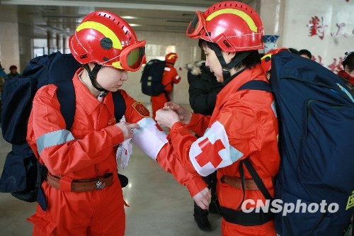 1月13日晚20點30分,中國國際救援隊從北京飛赴海地地震災區(qū),執(zhí)行國際救援任務,此次任務的救援隊員共60人,其中包括4名女醫(yī)療救援隊員。這次赴海地地震災區(qū),是中國國際救援隊自去年11月獲聯合國國際重型救援隊資格認證后第一次赴國外開展救援行動,也是自組建來飛行路程最遠的一次救援行動。 中新社發(fā) 吳敏 攝
