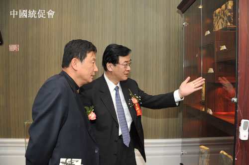 中國和平統一促進會執行副秘書長李路(右)和副秘書長王安南(左)參觀展覽