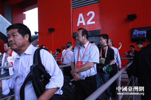 近150位海外統(tǒng)促會(huì)會(huì)長今日在滬參觀了上海世博會(huì),圖為會(huì)長們排隊(duì)等候參觀中國國家館。(中國臺(tái)灣網(wǎng) 楊麗 攝)