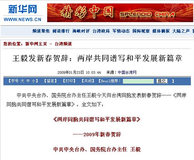 [新華網]王毅發新春賀辭:兩岸共同譜寫和平發展新篇章