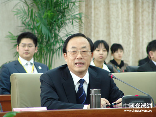 北京市副市長、北京奧組委常務執(zhí)行副主席劉敬民為臺灣同胞介紹奧運會籌備情況。