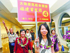 九、一些地方大型團組紛紛赴臺交流,大陸居民赴臺旅游實現60萬人次的預期目標,兩岸大交流熱絡而廣泛。