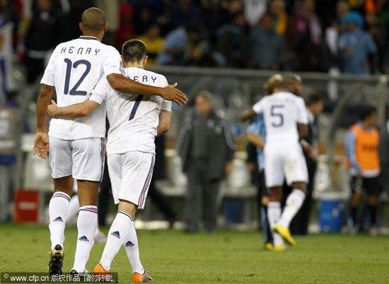 新浪體育訊 北京時間6月12日凌晨02:30(南非當地時間11日20:30),第19屆世界杯A組第一輪另一場比賽在開普敦的綠點球場展開爭奪,法國0比0戰平烏拉圭,烏拉圭小將洛德伊羅累計兩張黃牌被罰下。最后時刻出現禁區內手球爭議,但法國未獲點球。法國連續3屆世界杯首戰不勝。
