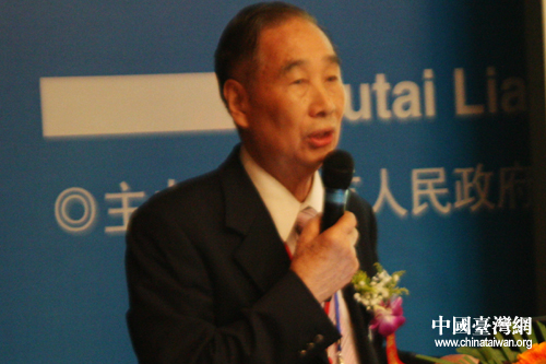 臺灣中藥商業同業公會聯合會理事長林所在“筑臺兩地中醫藥文化研討會”上發言 (中國臺灣網 王曉蕊 攝)