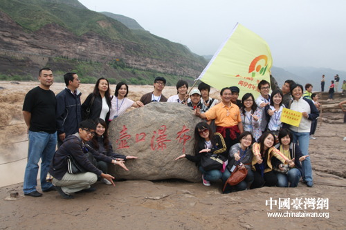臺灣青年團一行在壺口瀑布大石前合影留念(中國臺灣網 陳寧 攝)