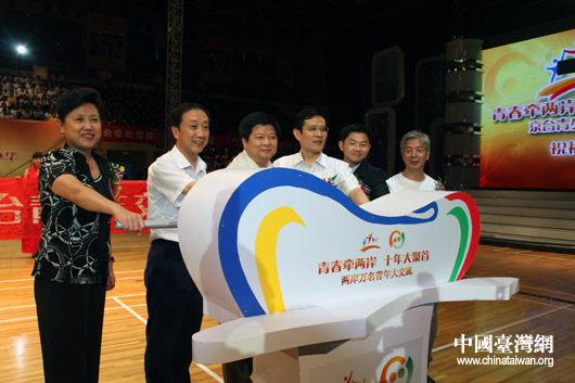 中國臺灣網7月15日北京消息 昨晚,“青春牽兩岸,十年大聚首——京臺青少年交流周”暨兩岸青年大聯歡活動在北京大學生體育館隆重舉行。來自臺灣大學、臺中技術學院、屏東商業技術學院、基隆市二信中學、嘉義東石學校、新竹中信學校和國民黨青年發展基金會、臺灣工藝發展協會、周文鏡文教基金會、臺中中小企業協會等社會團體組織的600余名臺灣師生與北京師生歡聚在一起,度過了難忘的一晚。