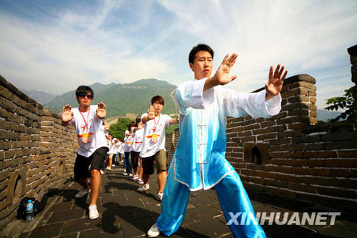7月15日,參加“兩岸青年舞太極聚長城”活動的學生在長城上學練太極。新華社發(fā)(卜向東 攝) |