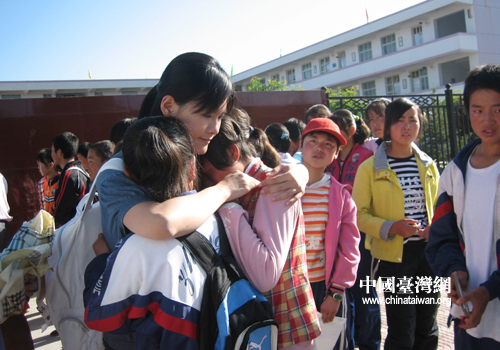 臨別時,兩岸的同學們潸然淚下,哭成一片,淚眼朦朧的“紅蘋果”充滿了依依惜別的離情(圖片來源:寧夏臺辦)
