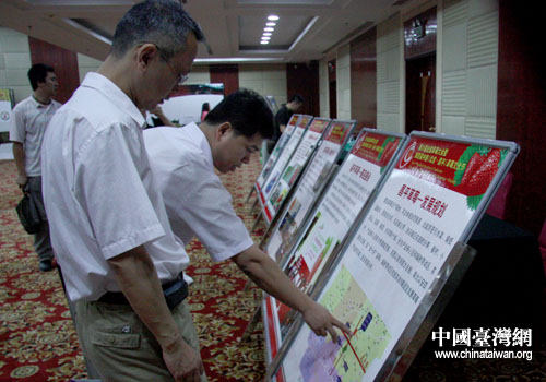“2009年京臺青年科學家論壇”今天在北京開幕,圖為與會代表瀏覽北京特色農業基地的展板。(中國臺灣網 張弛 攝)