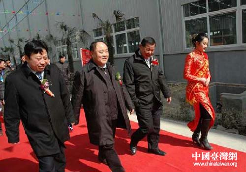 安徽省國資委主任許崇信(左二)、臺資負責(zé)人梁石輝(左三)參加投產(chǎn)典禮(圖片來源:淮北市臺辦)