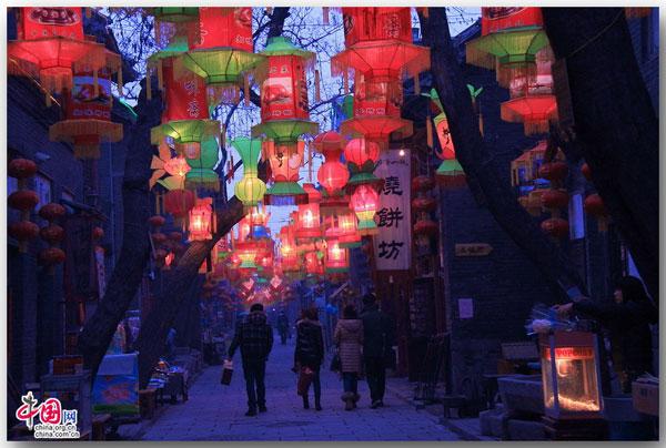 張燈結(jié)彩,千余花燈齊放的周村古商城,夜晚更是令人迷醉。 張愛東 攝