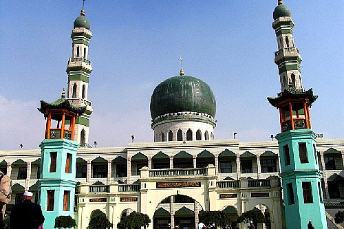 東關清真大寺,位于西寧東關大街東大街路南一側,初建于明太祖洪武十二年(1380年),至今已有600多年的歷史,歷代幾經修葺、擴建,規模日臻宏大,現已是我國西北地區最大的清真寺院之一?偯娣e11940平方米,禮拜堂面積1102平方米。寺院坐西面東,具有我國古典建筑和民族風格的建筑特點,畫梁雕棟,玲瓏精致。大殿為主體建筑,墻壁用青磚砌成,面寬5間,單檐歇山頂,高大的單體建筑矗立在突起的臺基上,屋面裝飾彩色硫璃瓦,殿脊裝飾藏式餾金寶瓶。殿前左右有邦克樓和望月樓,均為3層,再前為西式大門、二門。寺院寬敞,平時可容3000名教徒禮拜,最多達萬人,是我國西北地區伊斯蘭教的教育中心和最高學府。