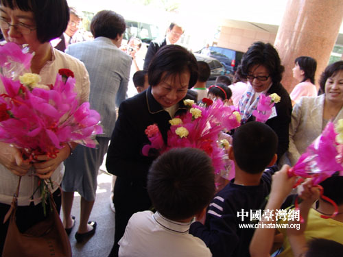 辜嚴倬云女士接受中國聾兒康復研究中心孩子們的鮮花