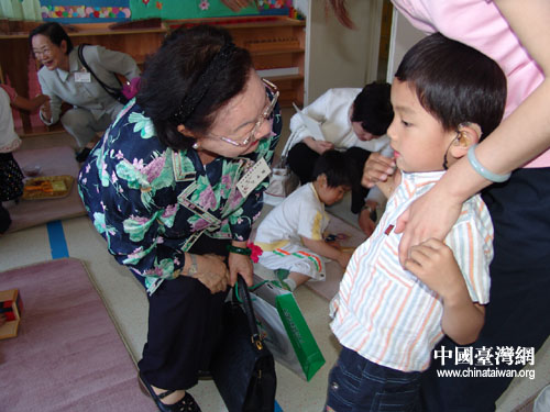 中國臺灣網5月18日北京消息 臺灣知名人士、中華婦聯總會主任委員辜嚴倬云女士率領的中華婦聯總會訪問團一行今天下午來到中國聾兒康復研究中心,親切看望了在這里接受康復訓練的聽障兒童和語訓教師,認真考察了這里的聽力門診和聾兒康復設施,觀看了聾兒的康復訓練課程,并給予高度評價。