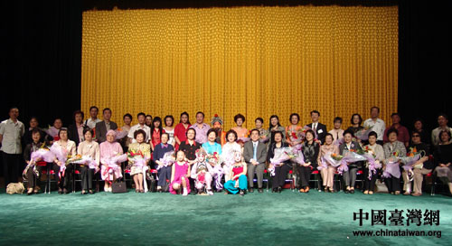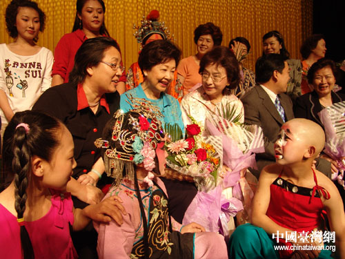 臺灣中華婦聯總會訪問團一行在觀看完演出后與小演員們親切交談