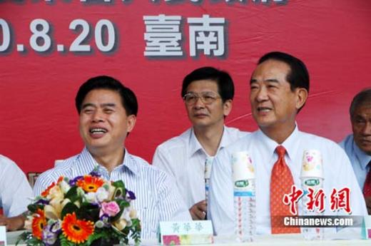 8月20日,“臺灣·廣東周”現(xiàn)場采購臺灣農(nóng)產(chǎn)品啟運(yùn)儀式在臺灣臺南縣走馬瀨農(nóng)場舉行,廣東省省長黃華華、臺灣親民黨主席宋楚瑜等出席儀式,當(dāng)天現(xiàn)場采購并交付啟運(yùn)各類農(nóng)產(chǎn)金額達(dá)30多萬美元。中新社記者 梁永強(qiáng) 攝