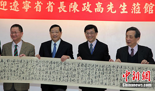 陳政高指出,遼寧的經濟總量目前位居中國大陸各省市第7名,希望在臺的遼寧鄉(xiāng)親們能經常回去看看,不要忘了遼寧,而且也能介紹臺灣企業(yè)到遼寧投資,或是介紹遼寧企業(yè)來臺投資,為臺灣與遼寧搭好橋梁。