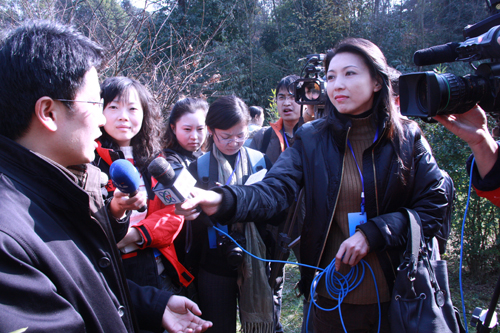 兩岸媒體采訪四川臥龍自然保護區管理局副局長李德生(鐘寶華 攝)