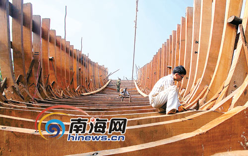 海南省臨高縣調(diào)樓村的海南榮升造船廠正在建造百噸深海捕魚船。海南日報記者 蘇曉杰 攝