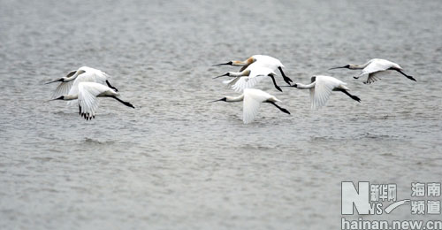 珍貴的國際瀕危侯鳥黑臉琵鷺 新華社記者姜恩宇攝