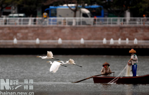 人鳥和諧 新華社記者姜恩宇攝