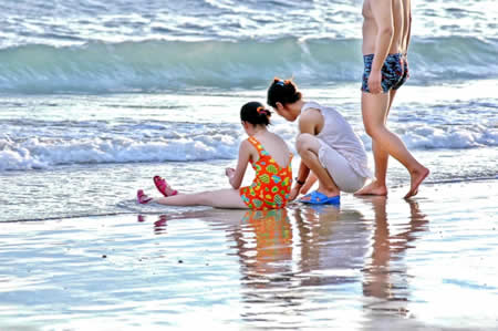 在大東海邊五星級酒店中,最好的是“銀泰”,一線海景,出門就是沙灘。而我們選的三亞寶宏酒店,坐電瓶車3分鐘可以到酒店專屬海灘。如果是一家3口的話,可選三亞寶宏的“幸福2+1”家庭套餐,5天4晚1450元,有一張大床和一張小床。還送早餐、風箏等禮物。
