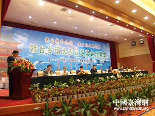 中國(guó)臺(tái)灣網(wǎng)6月26日南昌消息 昨日,以“贛臺(tái)攜手合作,建設(shè)現(xiàn)代化新農(nóng)村”為主題的2007贛臺(tái)鄉(xiāng)鎮(zhèn)長(zhǎng)農(nóng)業(yè)懇談會(huì)在南昌正式開(kāi)幕。本次懇談會(huì)由江西省臺(tái)辦、南昌市政府和贛州市政府共同主辦。兩地與會(huì)人員將參觀特色農(nóng)業(yè)園區(qū)和新農(nóng)村建設(shè)點(diǎn)、座談交流鄉(xiāng)鎮(zhèn)建設(shè)和農(nóng)業(yè)開(kāi)發(fā)經(jīng)驗(yàn),并制訂長(zhǎng)期合作交流協(xié)議。