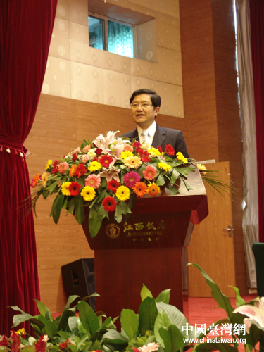 江西省副省長(zhǎng)趙智勇首先致辭,他向來(lái)自臺(tái)灣中南部的鄉(xiāng)鎮(zhèn)長(zhǎng)和民意代表介紹了江西近年來(lái)經(jīng)濟(jì)和社會(huì)的發(fā)展情況。