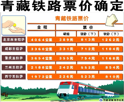 青藏鐵路票價終于確定 北京到拉薩硬座389元