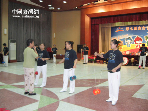 中國(guó)臺(tái)灣7月13日北京消息 今天上午,臺(tái)灣鶯歌高職扯鈴隊(duì)、臺(tái)灣強(qiáng)恕中學(xué)棒球隊(duì)、臺(tái)灣金甌女中女籃隊(duì)及臺(tái)北市公共利益文教基金會(huì)民俗文化參訪團(tuán)到北京市豐臺(tái)二中進(jìn)行表演交流。