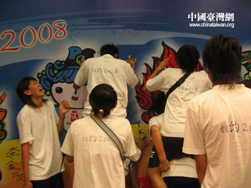 最后,在場(chǎng)嘉賓及師生紛紛在“第七屆京臺(tái)交流周”條幅上簽字留念,許多臺(tái)灣學(xué)生還別出心裁,騎在同伴身上,比賽看誰(shuí)的名字簽的最高!小伙伴們私下互贈(zèng)禮物,并留下聯(lián)系方式,以增進(jìn)彼此友誼。(張立霞) |