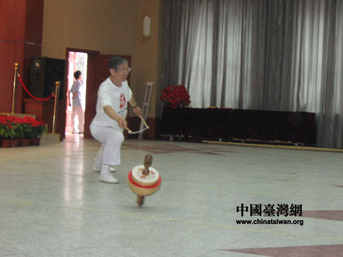 談到兩岸空竹藝術的特色,劉老向記者介紹道,在臺灣,抖空竹叫做扯鈴,他們的活動開展得比較普遍,拿學校來說,大中小學都普遍開展空竹活動,踢毽、跳繩、抖空竹,這些民族傳統的項目,他們很重視。同時還鼓勵學生們創新新的花樣。在臺灣來說呢。還把抖空竹作為對外交流的方式。他們還成立了扯鈴協會,進行推廣。我們在教學生抖空竹的時候,也經常會介紹臺灣的情況。在技術方面,臺灣普遍比較好,尤其是雙頭,水平比大陸要高,花樣也多。并且鼓勵創新新的花樣。