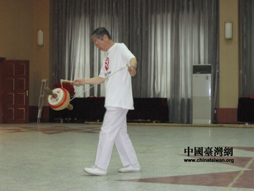 談到兩岸空竹藝術的特色,劉老向記者介紹道,在臺灣,抖空竹叫做扯鈴,他們的活動開展得比較普遍,拿學校來說,大中小學都普遍開展空竹活動,踢毽、跳繩、抖空竹,這些民族傳統的項目,他們很重視。同時還鼓勵學生們創新新的花樣。在臺灣來說呢。還把抖空竹作為對外交流的方式。他們還成立了扯鈴協會,進行推廣。我們在教學生抖空竹的時候,也經常會介紹臺灣的情況。在技術方面,臺灣普遍比較好,尤其是雙頭,水平比大陸要高,花樣也多。并且鼓勵創新新的花樣。
